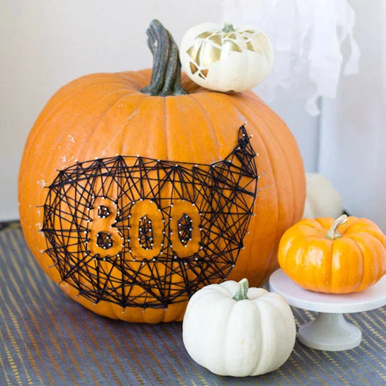 While everyone else is busy carving pumpkins, do something unexpected with this neat and easy string art concept. All you need are small nails, some string and a little bit of imagination!