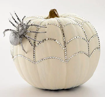 This one's for all the glamor queens! Embellish your pumpkins with shiny rhinestones and sequins, and glue on a silver-spray-painted spider to complete the look.